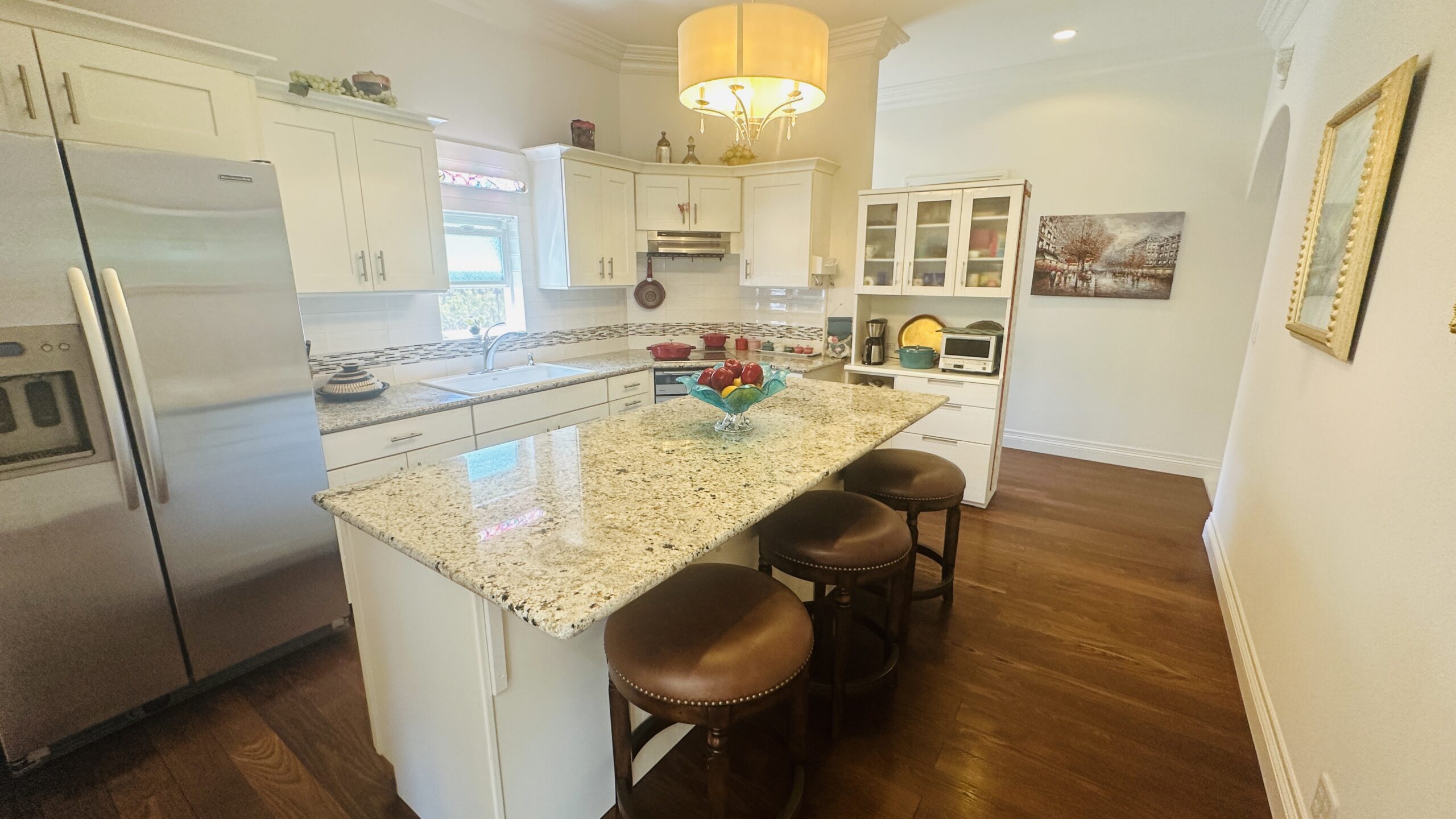 - Large kitchen and dining area